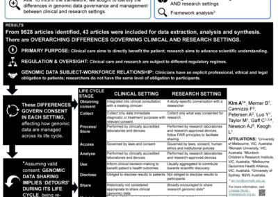 Cannizzo, F., Vidgen, M.E., McWhirter, R. , Petersen, A., Otlowski, M., Rizzi, M., Hensley, J., Newson, A.J. Opportunities for a national genomic data governance framework in Australia: a systematic review. BMC Med Ethics 26, 111 (2025). https://doi.org/10.1186/s12910-025-01273-7